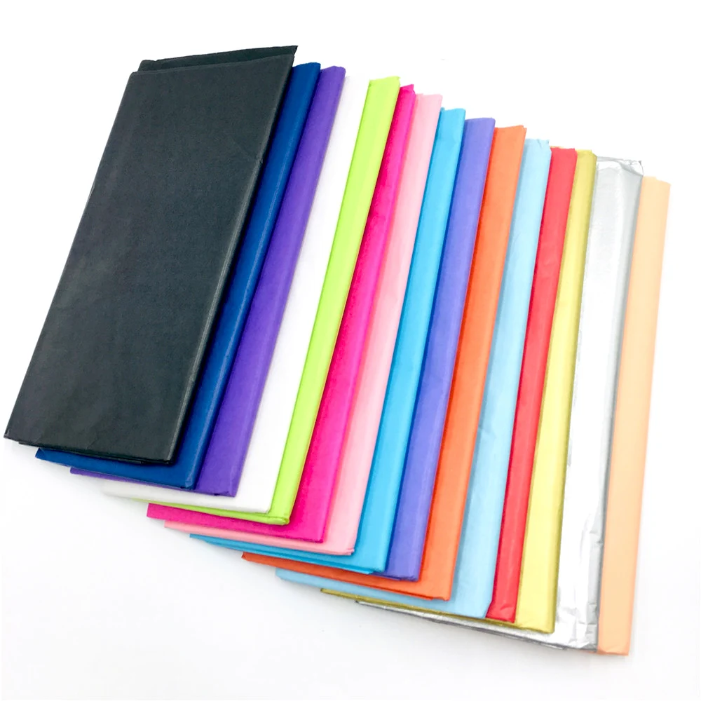 moisture proof DIY wrapping Tissue Paper Wedding Gift clothing wrap Paper Copy Tissue Paper candy colors.Process paper TISSUE PAPER, also known as tissue paper, is thin and soft, with excellent uniformity and transparency, and good surface properties, fine, smooth, smooth, no sand, good printability. Paper is thin and smooth